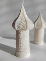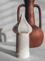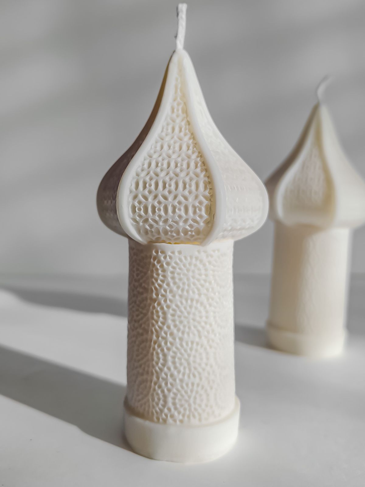 This decorative candle in an oriental style is a true sculptural piece that catches the eye. Its refined silhouette and delicately textured patterns evoke oriental architecture, blending tradition and modernity.